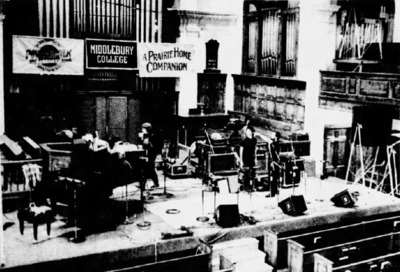 Photos by Stu Perry and Steve Worden. 1983.08.20 Las Crosse Tribune": First PHC show to use a portable satellite uplink. / Berto: rebroadcast on May 13, 1989. / See May 7-8 reference notes as well- confusing-unclear data on the 3 Vermont shows. Per GK: First show to use portable satellite uplink. In Vt., satellite truck went on fritz and techman Tim Metzger had tiny obscure part flown in from DC same day to save day.